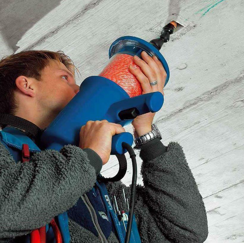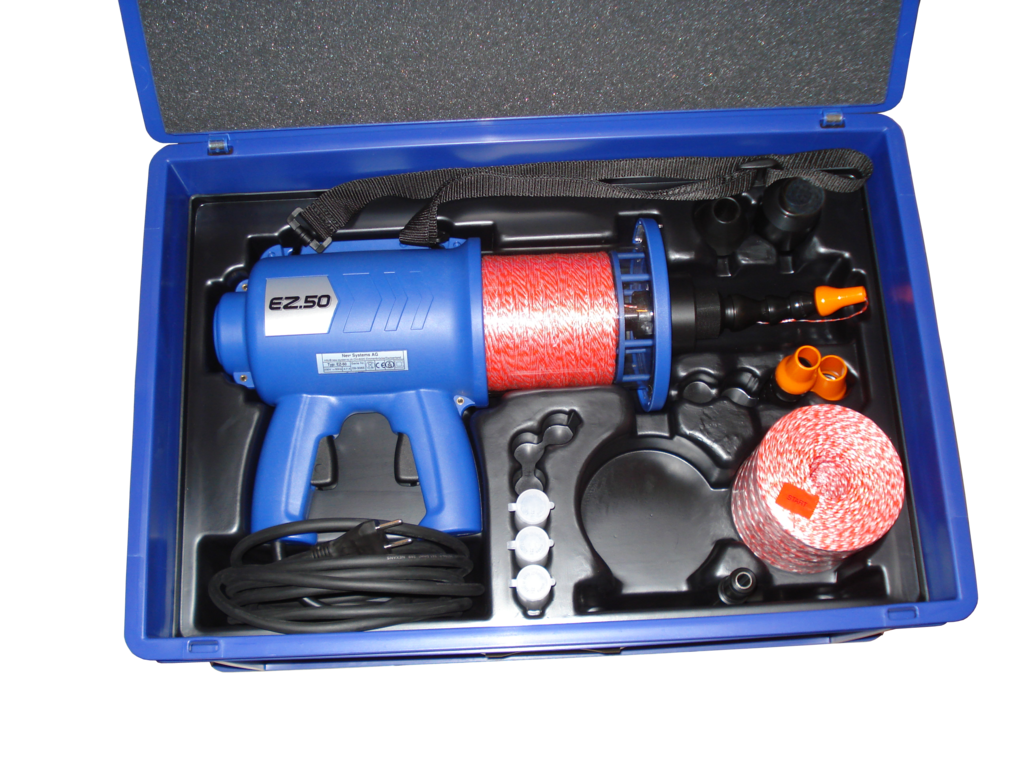 Агрегат для задувки шнура EZ50 от Zeitler быстро и надежно задувает специальный шнур в стандартные трубы электропроводки Ø 18 - 50 мм (внутренний диаметр).