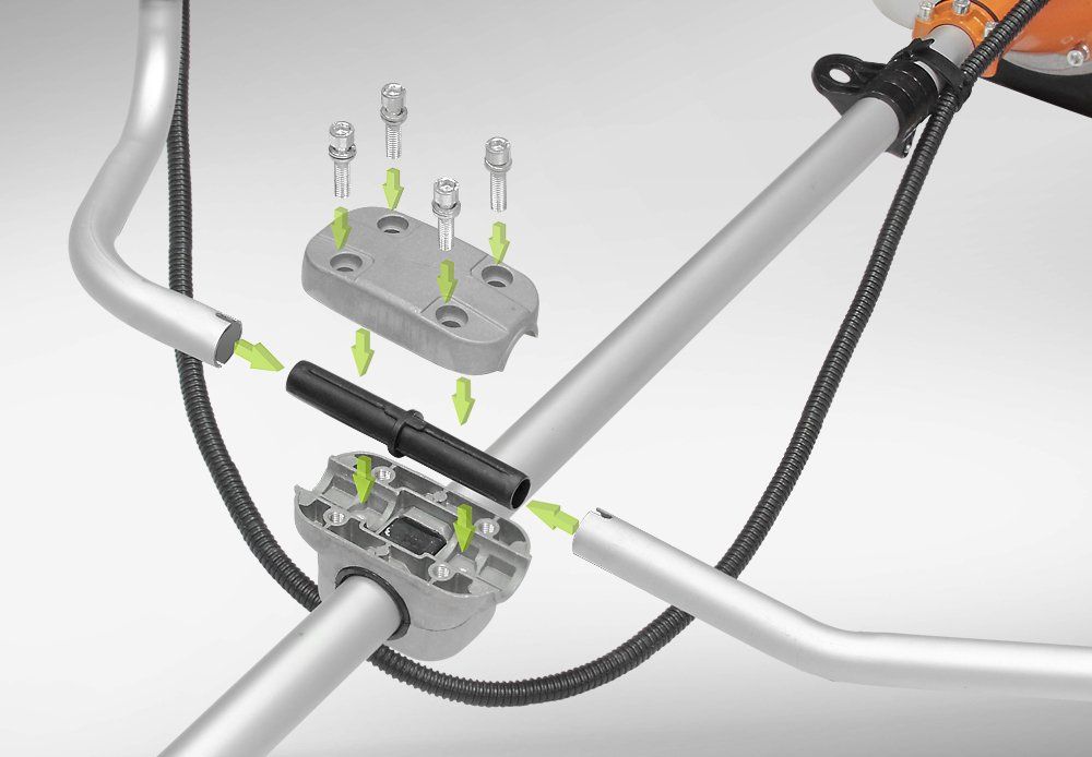 Увеличенная жесткость крепления рукояток, благодаря мощному кронштейну и дополнительной осевой вставке. Осевая вставка улучшает плотность зажима и исключает смещение рукояток относительно друг друга.Эргономика: рукоятки