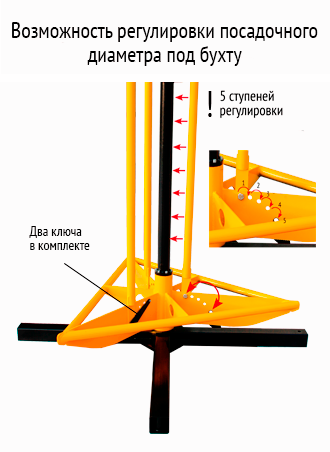 - Пятиступенчатая регулировка под внутренний диаметр бухты. Гаечные ключи для регулировки в комплекте!