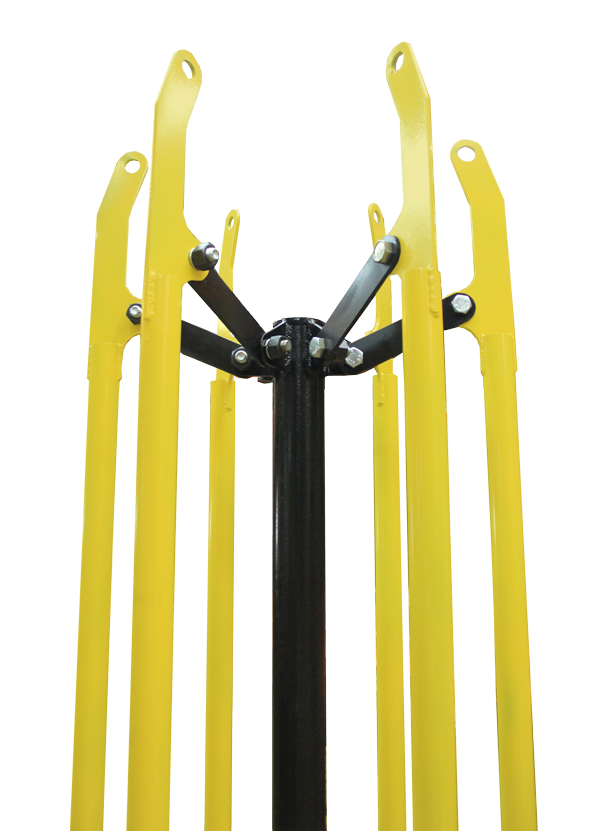 Представляет собой прочную стальную конструкцию с возможностью регулировки посадочного диаметра под внутренний диаметр бухты. Вертикальная нагрузка на бухтодержатель возможна до 5 тонн.