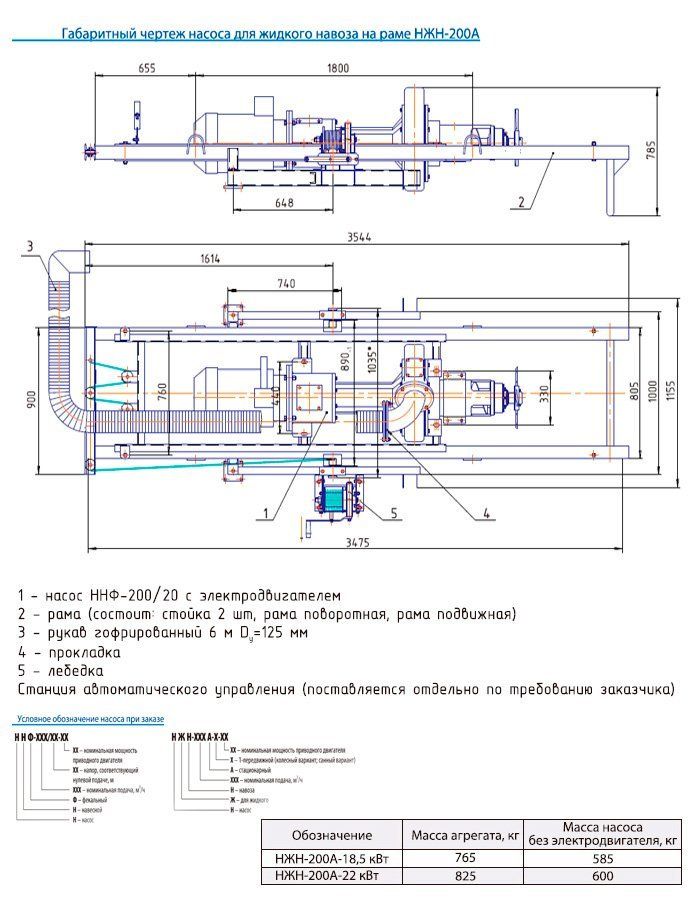 Насосы для жидкого навоза НЖН-200А (колесный или санный вариант) в составе электронасосного агрегата, предназначены для измельчения, перекачивания жидкости со взвешанными веществами, а также массных, фекальных жидкостей, жидкого навоза плотностью твердых включений до 1%, максимальными размерами до 20 мм, температурой от 5°С до 40°С.