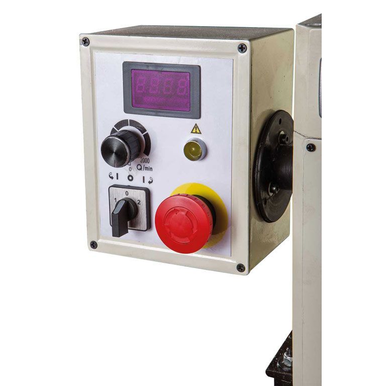 Станок устанавливается на верстак или тумбу и жестко фиксируется на поверхности. За точность вылета пиноли шпинделя отвечает цифровая индикация.