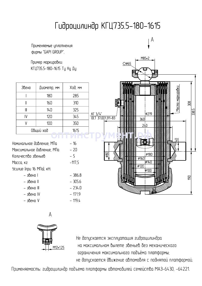 Гидроцилиндр КГЦ 735.5-180-1615 в продаже по цене 86 790 руб. в Интернет-магазине Проф-инструмент с доставкой . Звоните по телефону +8 (800) 302-10-51.