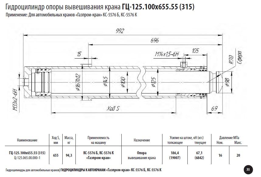 Гидроцилиндр опоры вывешивания крана ГЦ-125.100х655.55 (315) Ц-125.065.00.000-1 в продаже по цене 61 596 руб. в Интернет-магазине Проф-инструмент с доставкой . Звоните по телефону +8 (800) 302-10-51.