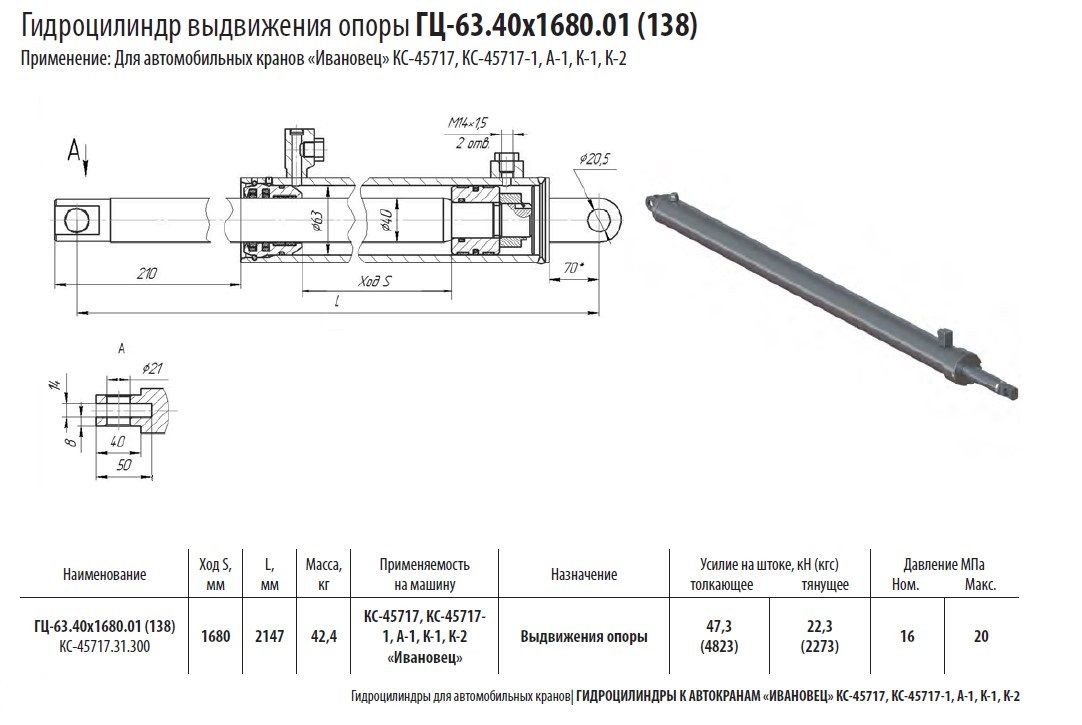 Гидроцилиндр выдвижения опоры ГЦ-63.40х1680.01 (138), КС-45717.31.300-4 в продаже по цене 28 560 руб. в Интернет-магазине Проф-инструмент с доставкой . Звоните по телефону +8 (800) 302-10-51.