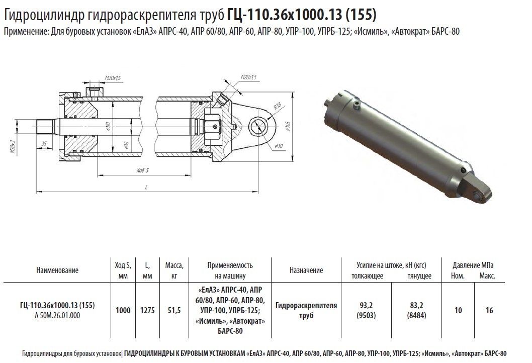 Гидроцилиндр гидрораскрепителя труб ГЦ-110.36х1000.13 (155), А 50М.26.01.00А-03 в продаже по цене 39 360 руб. в Интернет-магазине Проф-инструмент с доставкой . Звоните по телефону +8 (800) 302-10-51.