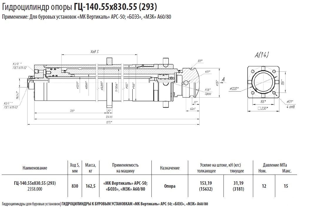 Гидроцилиндр опоры (аутригер) ГЦ-140.55х830.55 (293), А60/80.58.01.000-01 в продаже по цене 122 040 руб. в Интернет-магазине Проф-инструмент с доставкой . Звоните по телефону +8 (800) 302-10-51.