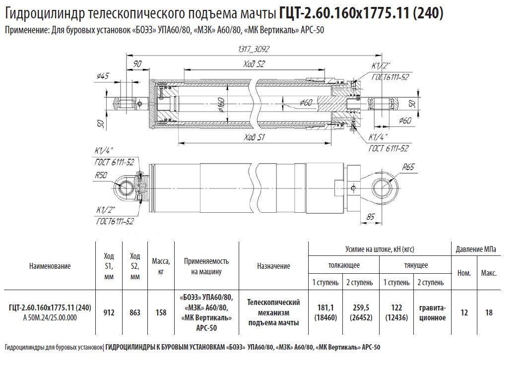 Гидроцилиндр телескопического подъема мачты ГЦТ-2.60.160х1775.11 (240), А 50М.24/25.00.000 в продаже по цене 113 476 руб. в Интернет-магазине Проф-инструмент с доставкой . Звоните по телефону +8 (800) 302-10-51.