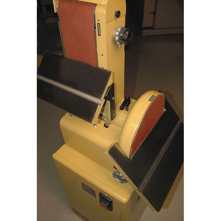 Деревообрабатывающие станки Powermatic, наиболее популярные в США, характеризуются как лучшие в классе, благодаря чему признаны «золотым стандартом». Модель 31А полностью соответствует марке: это мощный станок, сделанный прочно и основательно. Компоновка – напольная, в тумбе-подставке размещен мощный двигатель и 100-миллиметровый патрубок пылеотсоса. Верхняя часть корпуса станка чугунная, из этого же материала сделаны и оба рабочих стола. Каждый из них регулируется по углу наклона, причем стол тарельчатого узла поворачивается не только на 45° вниз, но и на 15° вверх, а стол ленточного можно установить продольно. Для точных работ предназначен угловой упор с направляющей вдоль Т-образного паза, который предусмотрен у обоих столов. Ленточный узел можно установить вертикально, горизонтально или в любом промежуточном положении. Запас мощности и массивная конструкция с большой жёсткостью обеспечивают точность и отсутствие вибраций, даже при выполнении тяжёлых работ.