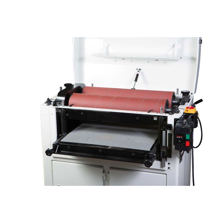 Jet DDS-225 – мощный профессиональный шлифовальный станок, предназначенный для эксплуатации на производстве. Может работать с брашировальными (щеточными) валами, которые поставляются в качестве дополнительных принадлежностей или барабанами с намоткой из абразивной ленты (стандартная комплектация). При условии небольшого съёма материала станок подходит для калибрования изделий из дерева, клееных пустотелых фасадов, деталей из МДФ и прочих подобных, причем сразу под финишную отделку. В сочетании с щетками DDS-225 может производить текстурирование (браширование) поверхности или шлифование фасонных изделий.