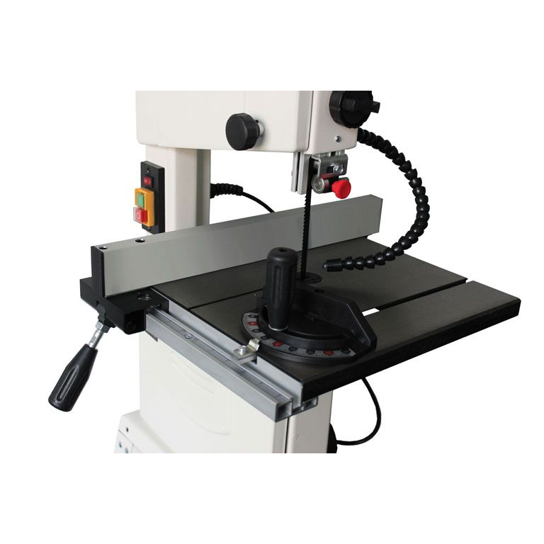 Механизм натяжения пильной ленты оборудован индикатором силы и рычагом для быстрого ослабления перед хранением; при его использовании настройки не сбиваются. Направляющие полотна трехроликовые с подшипниками качения, такой вариант считается наиболее долговечным, меньше всего изнашивает полотно, не приводит к его нагреву от трения. Двери корпуса пилы зафиксированы винтами с барашковой рукояткой, что обеспечивает доступ к механизму для его наладки и надежное запирание без использования вспомогательного инструмента вроде отверток или гаечных ключей.