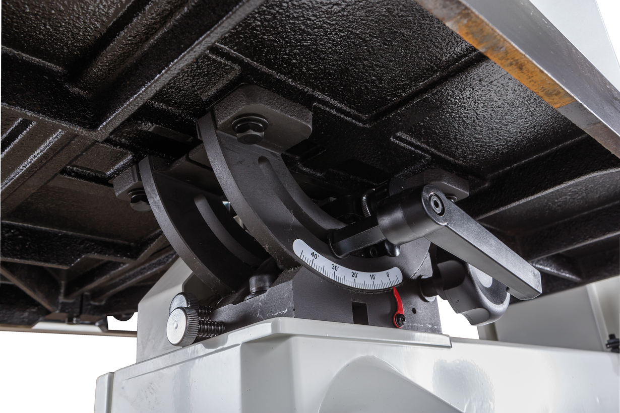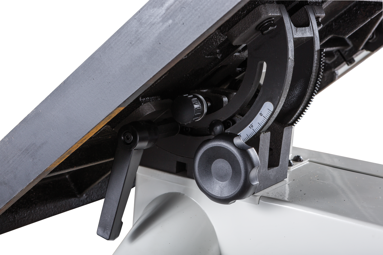 Рабочий стол чугунный, поворотные сегменты, на которые он опирается, из этого же материала. Наклон производится при помощи зубчатого механизма вращением рукоятки и возможен в обе стороны (на 5° в сторону станка и на 45° от него). Для наибольшей эффективности пылеудаления установлено два 100-миллиметровых патрубка: один под рабочей поверхностью, второй в нижней части корпуса.