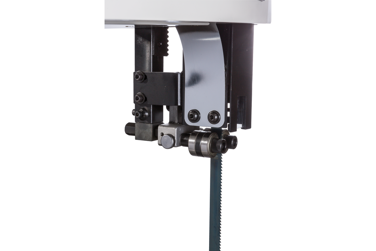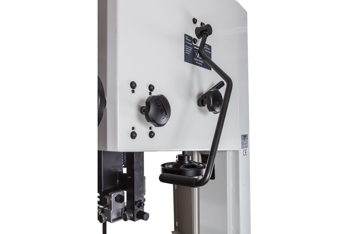 Jet JWBS-18 – новая ленточная пила для профессионального применения. Ее основное преимущество на фоне аналогов прошлых поколений – увеличенная высота распиловки. Этот параметр очень важен для тех, кому нужен универсальный станок, способный взять на себя функции делительного. К подобным работам приспособлен и параллельный упор: направляющий профиль можно установить вертикально на боковую грань так, чтобы надежно фиксировать плоские заготовки при их роспуске на тонкие пластины. В целом конструкция бокового упора очень хорошо проработана и соответствует самым строгим требованиям: профиль жесткий и прочный, закреплен на массивном чугунном кронштейне, который перемещается по цилиндрической направляющей. Предусмотрена грубая (вручную) и точная (микрометрическим винтом) установка.