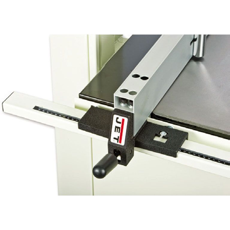 Высокая точность пиления определяется несколькими особенностями, одна из ключевых – направляющие пильной ленты в виде «пятаков», регулируемых под установленное полотно. Сам по себе узел направляющих, установленный на специальной рейке, жестко фиксируется непосредственно над заготовкой – небольшой просвет рамы в данном случае является достоинством. Jet JWBS-16X может работать с лентами шириной от 3 до 25 мм, то есть предоставляет все возможности подбора полотна, что имеет решающее значение для получения качественного реза.