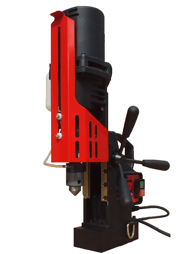 Магнитная сверлильная машина на магнитной подушке отлично подходит для применения в условиях, где применение стационарного станка не предоставляется невозможным или нецелесообразным. Благодаря небольшому весу, 16.5 кг, удобной и компактной конструкции, а также наличие мощного магнита делают его отличным электроинструментом в любой ситуации. Сверлильная машина на магнитном основании, с увеличенной силой притяжения к неровным поверхностям (система MFSC), будет незаменимым в работе при ремонте мостов, в полевых условиях, судостроении, в строительстве.