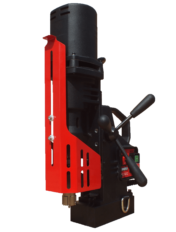 Выполнение работ на магнитных сверлильных машинах МС-51 происходит с максимальной степенью комфорта и безопасности. Обладая электронной системой плавного пуска дает возможность делать отверстия в трубах, или же осуществлять сверление внахлест. Заменяемый шлицевой хвостовик ротора, исключает дорогостоящую замену ротора при износе. Интегрирована система автоматической подачи жидкости под высоким давлением, чем обеспечивается высокая надежность и безопасность. Данная система уже идет в стандартной комплектации.
