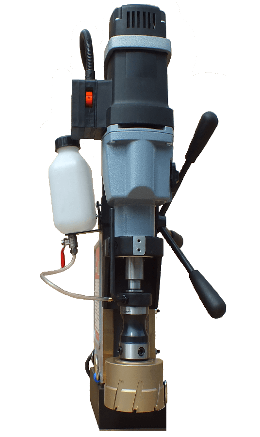 Наличие компактного бачка для СОЖ (смазочно-охлаждающая жидкость), прикрепленный на двигателе сверлильной машины на магнитном основании. Интегрирована система автоматической подачи жидкости под высоким давлением, чем обеспечивается высокая надежность и безопасность.