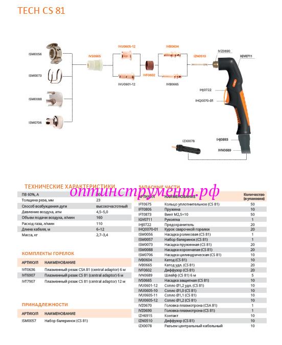 Плазмотрон Сварог TECH CS 81, 6 м, IVT6907 в продаже по цене 13 057 руб. в Интернет-магазине Проф-инструмент с доставкой . Звоните по телефону +8 (800) 302-10-51.