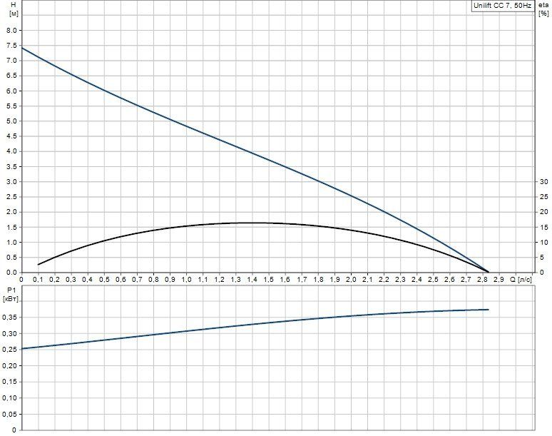 Одноступенчатый погружной дренажный насос Grundfos UNILIFT CC 7 M1 с вертикальным напорным патрубком. Служит для перекачивания чистой и загрязненной воды без волокнистых включений с твердыми частицами до 10 мм, отведения воды из затапливаемых помещений, стиральных машин, моечных агрегатов и душа. А так же откачивания воды из рек, прудов и различных емкостей.