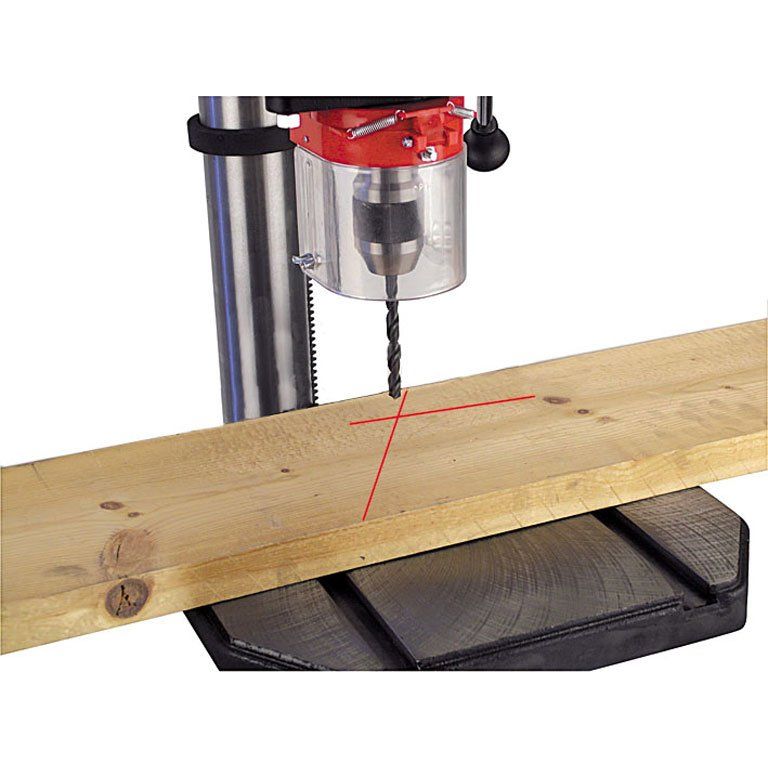 Станок комплектуется лазерным устройством для отображения на поверхности заготовки центра предстоящего отверстия и удобным быстрозажимным патроном.