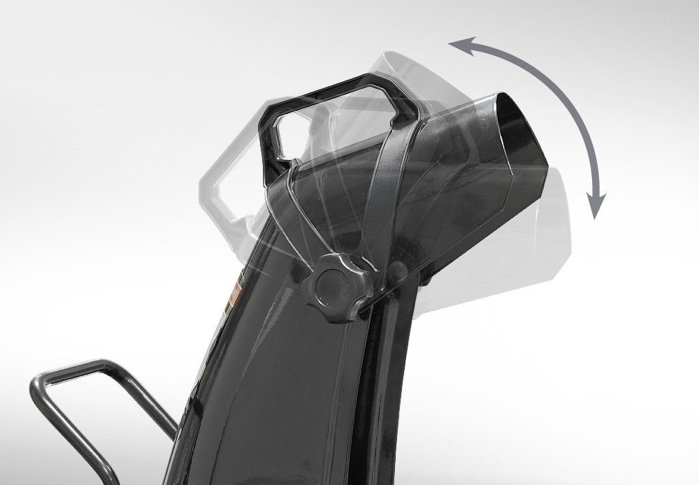 Надежный металлический дефлектор (желоб) с регулировкой направления выброса снега.