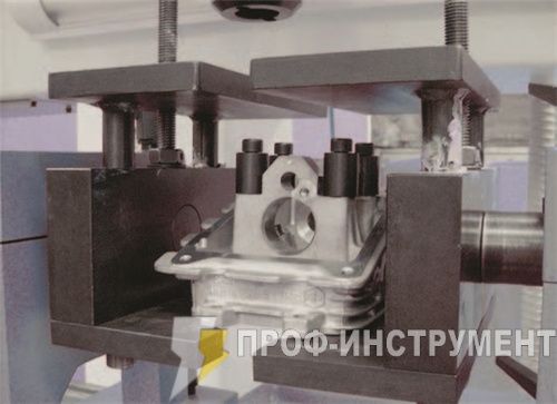 - Универсальное зажимное приспособление 2-х кулачкового типа, c вращением на 360°, с приспособлениями для всех видов головок цилиндров двигателя.