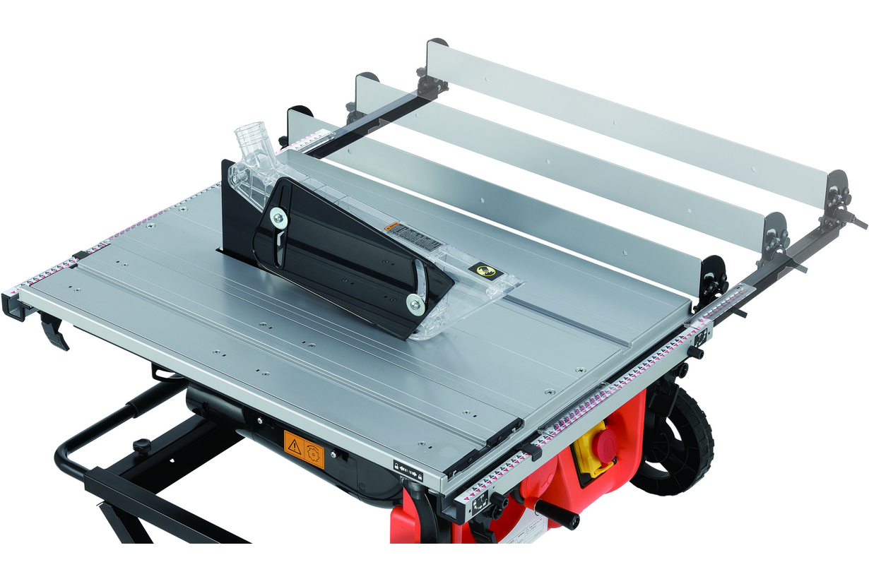 - Выдвижной расширитель рабочего стола справа из алюминиевого профиля, совмещенный с параллельным упором