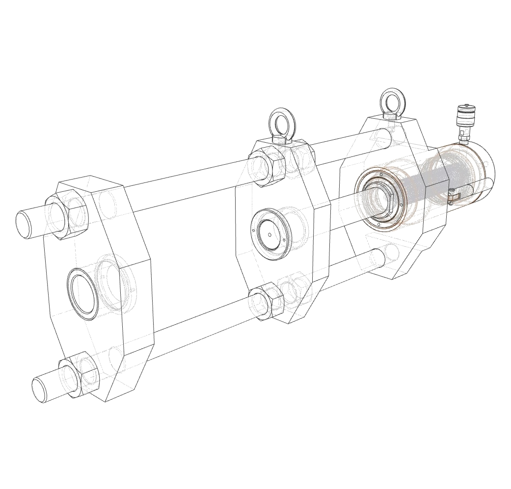 Возврат штока в исходное положение происходит при сбросе давления под действием пружины.