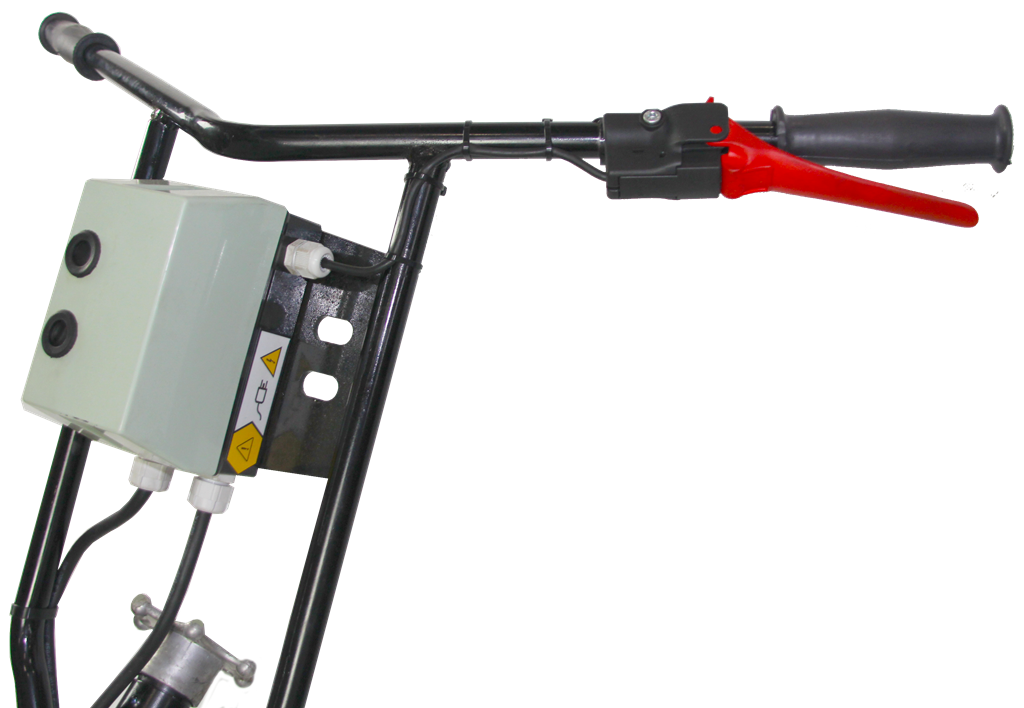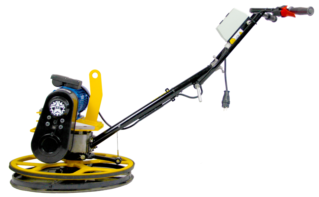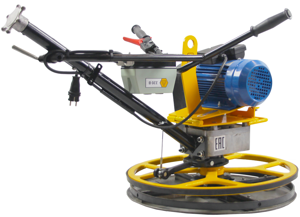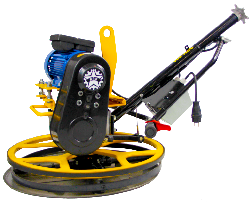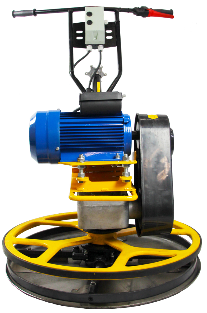 Принцип работы: электрический двигатель, установленный на несущей раме затирочной машины, приводит во вращение затирочные лопасти, при помощи редуктора. Благодаря проведенной модернизации, удалось повысить комфорт и и безопасность работы оператора при эксплуатации затирочной машины.